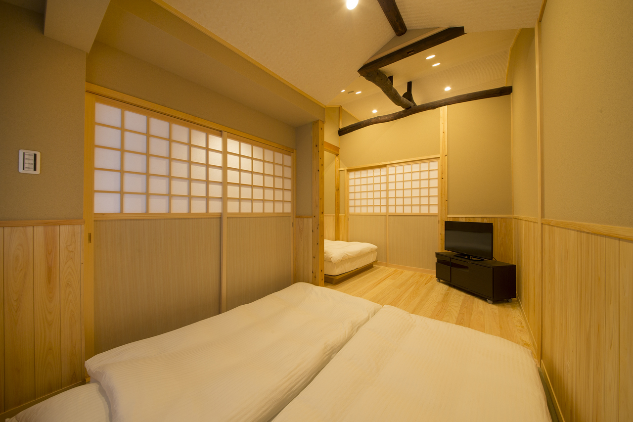 We renovate traditional machiya townhouses in Kyoto into guesthouse accommodations. Each room is fully equipped with air conditioning, a television, an electric kettle, and a private bathroom with a bathtub, complimentary toiletries, and a hairdryer.